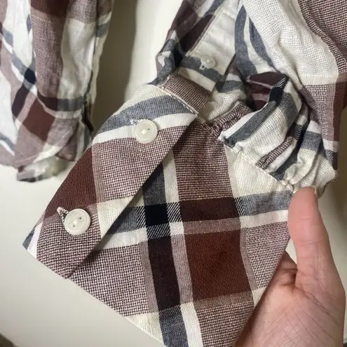 Size: Large Details: cream/maroon/black plaid pattern, buttons along front, cotton Condition/flaws... Show more