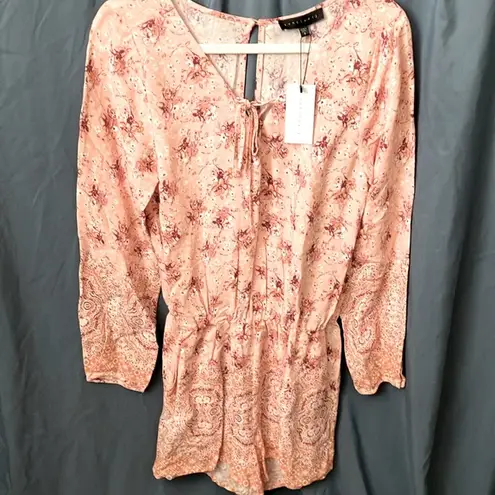 : Peach colored floral Romper- long sleeves with pockets- S - $30 New With Tags - From Kelly