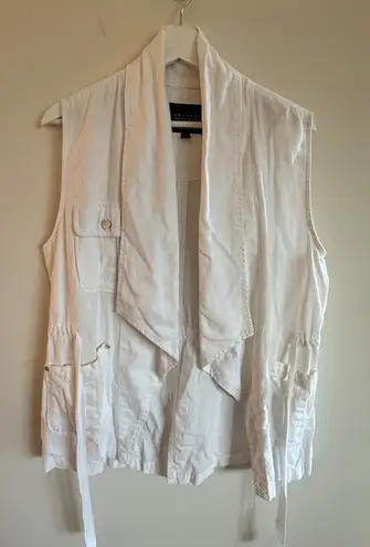 Effortless layering piece from Sanctuary—this white sleeveless linen vest features a soft draped fro... Show more