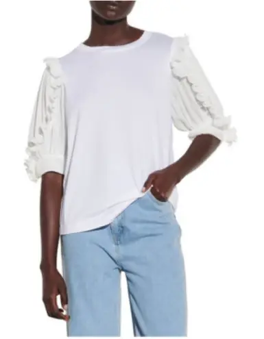 Sandro Paris Ruffle Sleeve Top White Size 8 - $45 - From K