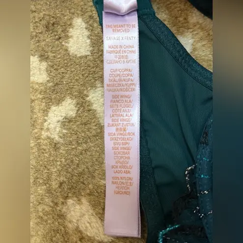 Savage X Fenty Shining NWT Star Embroidered Unlined Demi Bra women’s size 34B. Retro disco-inspired stars define this must-have Shining Star Embroidered Unlined Demi Bra, with sheer, crystal tulle to finish the look. Unlined Underwire 70s retro multicolored embroidered stars on sheer, crystal tulle ground Power mesh back Rhinestone star charm at center front Adjustable, supportive, shiny elastic straps with rose gold-tone hardware Hook-and-eye back closure Cup/Side Wing: 100% Nylon; Ground: 100% Polyester; Back Wing: 74% Nylon, 26% Elastane; Cup Lining: 100% Nylon Hand wash cold, do not wring, do not tumble dry, line dry Imported