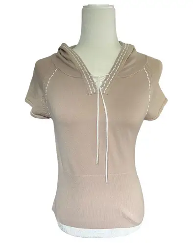 Vtg Y2K Tan & White Knit Hooded Top Size M - $25 - From Ashley