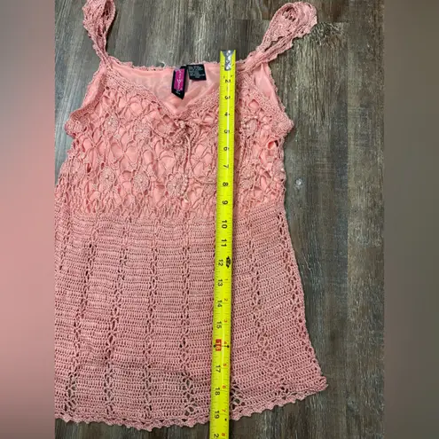 Say What? Y2K Pink Crochet Knit Tank Top Large Pearl Detail Stretch Croquette - $15 - From Nicole