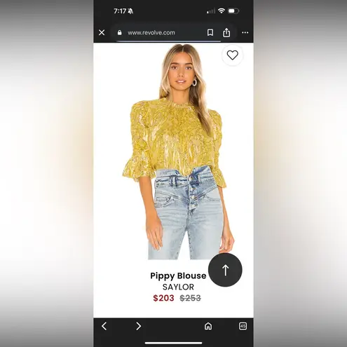 Saylor Revolve Pippy Puff Sleeves Ruffle Metallic Blouse Top in Color Mustard Gold - $34 - From Cassy