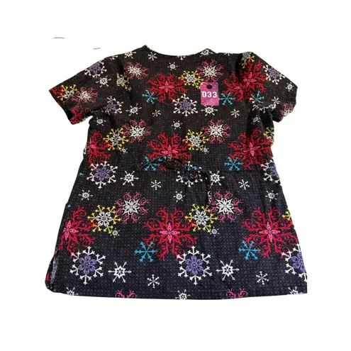 SB Scrubs Scrub Top Size Small Colorful Snowflake Print V Neck Pockets Back Tie - $14 - From Christina