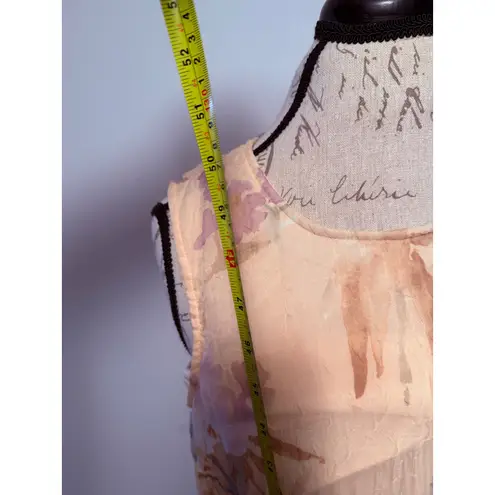 Elegant vintage sleeveless midi dress featuring a delicate floral pattern in pastel peach and purple... Show more