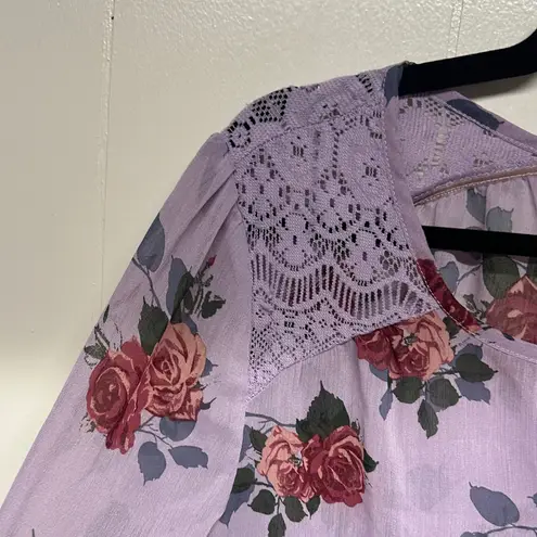 Self Esteem Lavender Floral Semi Sheer Blouse with Bell Sleeves Purple Size M - $16 - From Michelle