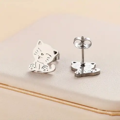 Set Of 2 Pairs Cute Cat Silver And‎ Golden Plated Stud Earrings Gold - $16 New With Tags - From Mon