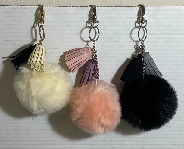Set Of 3 Poof & Tassel Bag Charms In Black, Pink, and Cream Black - $16 - From Danielle