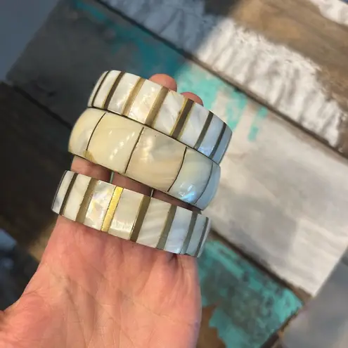 Set of three pearl stone inlet looking chunky gold bracelets. - $12 - From Taylor