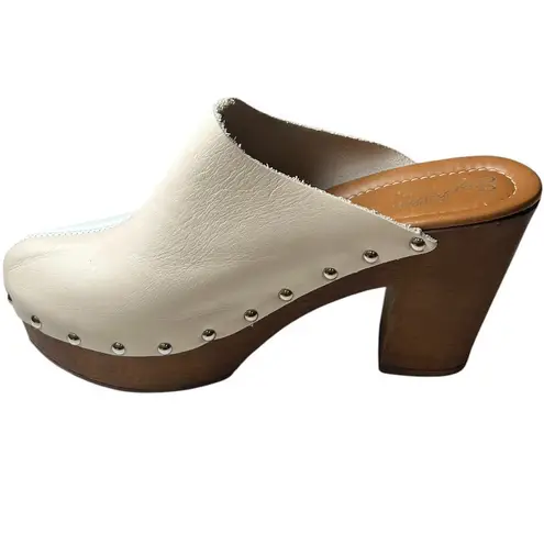 Seychelles Women's Go All Out Clog, Ivory/White, Product Description Retro vibes in classic Italian-made clogs. Thoughtfully designed for simultaneous height and comfort, they come complete with burnished antique studding and authentic wood-like finish platform wrapped around a flexible unit bottom heel. A center seam detail, curved topline, and extra cushioned insoles ensures a comfortable fit. Gently used, pre-loved item. No significant flaws. Slight scuffing, scratches & typical wear in places as to be expected with normal use.