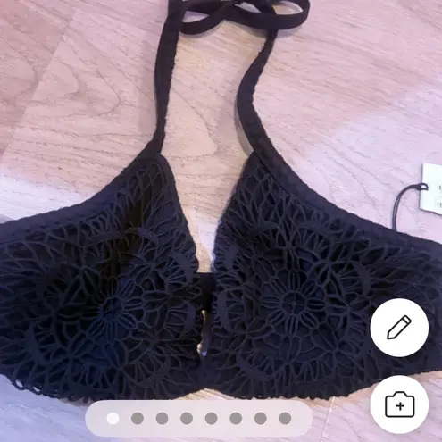 Chic black lace bralette with floral design. Halter style for versatile wear. Shade & Shore Black F... Show more