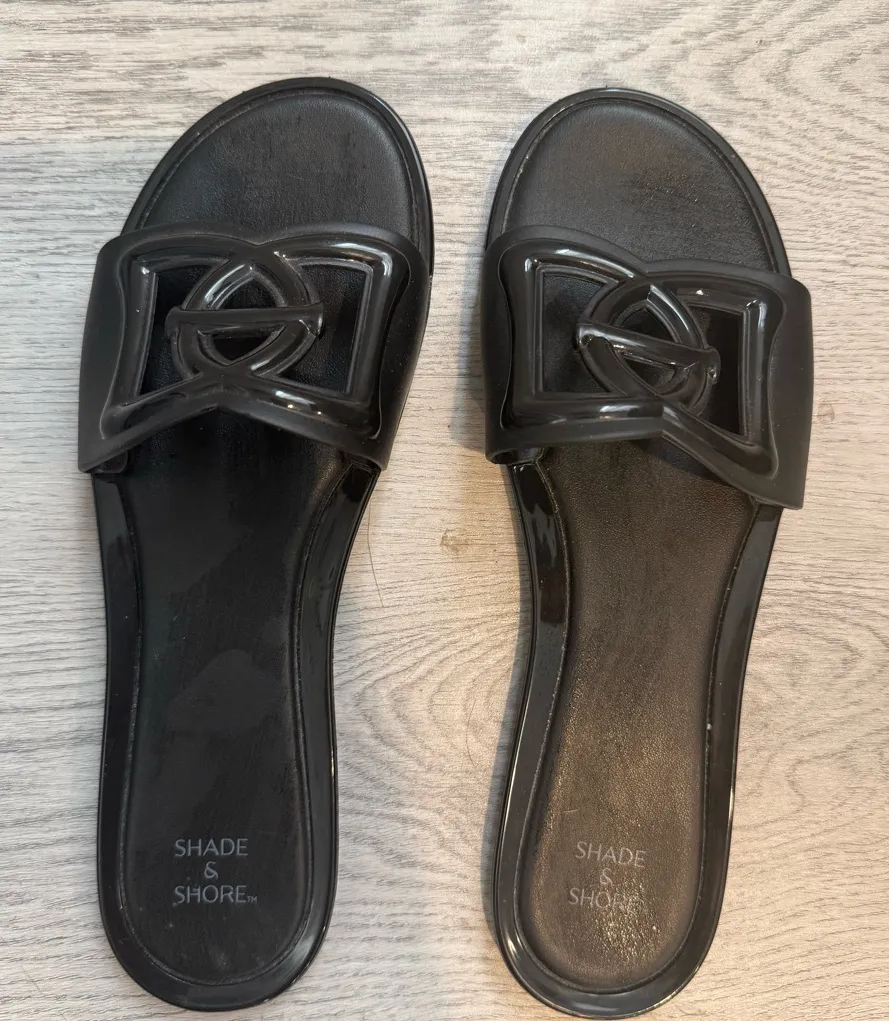 Shade & Shore Glossy Black Bow Sandals Size 9 - $10 - From Ashley