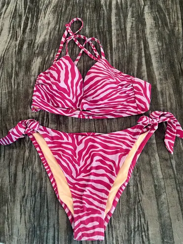 Pink Zebra Print Bikini Set Top 36B Bottoms L - $9 New With Tags - From chic
