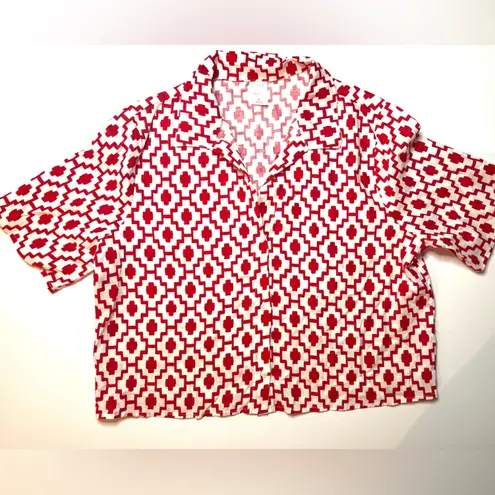 two-piece set with a bold red and white geometric print. ‼️Top is size medium and the shorts are siz... Show more