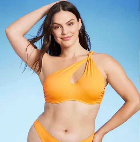 • One-shoulder keyhole bikini top • Soft, stretchy fabric with lining • Back hook fastener • Adjusta... Show more