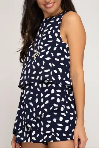 Preloved SHE + SKY | Navy Blue and White Sleeveless Romper Sz M. In excellent condition. Playful n... Show more