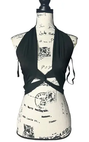SHEIN Black Twist Front Cut Out Crop Halter Top - Size S (NWOT) This SHEIN black twist front crop h... Show more