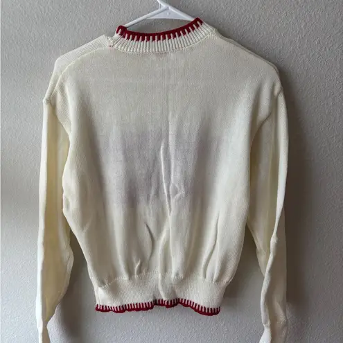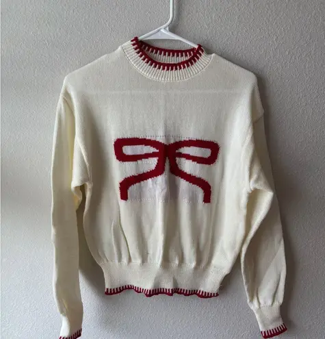 This SHEIN sweater showcases a charming cream base with striking red accents, including a large bow... Show more