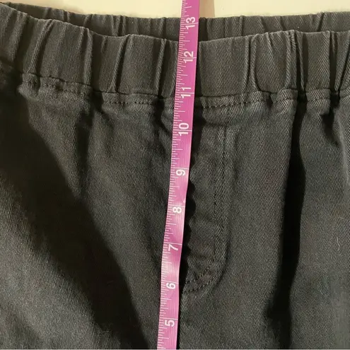 Cool asymmetrical denim cutoffs with an elastic waist and distressing in front. In great used condit... Show more