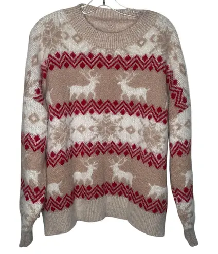 Shein Curve Christmas sweater Super soft Tan, white and red Reindeer and snowflakes Size 3XL Approx... Show more