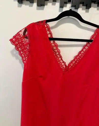 Shein Curve plus 2X cap sleeve Red lace and semi-backless top Shein Curve 2X 100% polyester Lace d... Show more