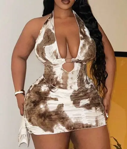 Chic halter neck design. Eye-catching brown and cream pattern. Ideal for stylish outings. Brand new... Show more
