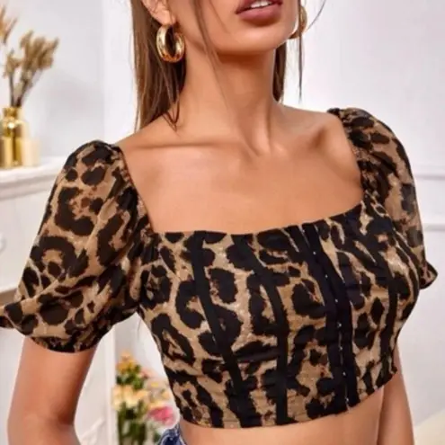 Leopard Print Square Neck Puff Sleeve Corset Style Crop Top Blouse Women’s Size Large Brand new wi... Show more
