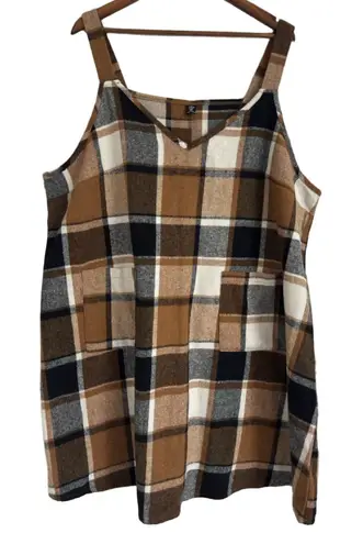 Pinafore Brown Plaid 4X Sleeveless. Overall V-neck Dress Relaxed Straight Fit 100% Polyester Machine... Show more