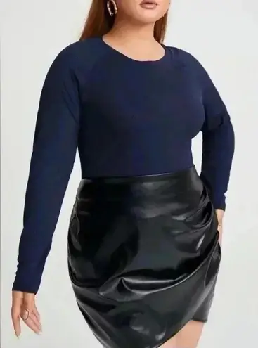 * Shein plus size lace trim ribbed knit tee * Black * Sexy * Plain * Deep V-neck * Long sleeve * Sli... Show more
