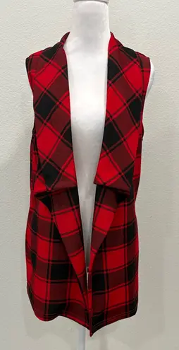 It's a red and black buffalo checkered fleece vest with an open front Size M 95% Polyester 5% Spande... Show more