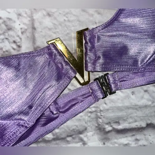 Gorgeous lavender bikini by SHEIN Shimmery! 2 piece set both size medium Gold tone V detailing No... Show more