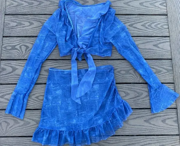 Cute matching swim coverup set ! Size large Blue denim pocket print Long sleeve tie front top And... Show more