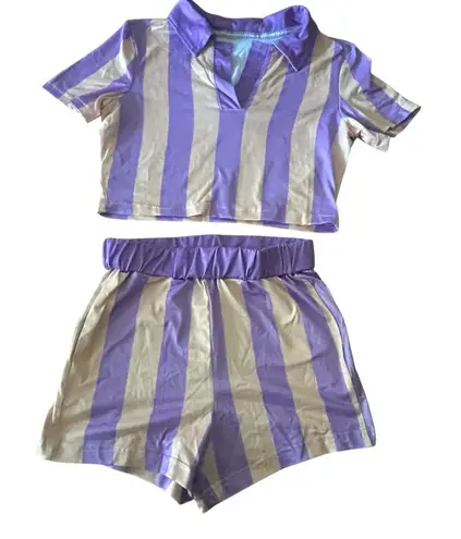 Stylish striped short set that's perfect for warmer weather! This two-piece set features a short-sle... Show more