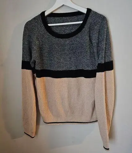 Shein Sweater Crewneck Color Block Stripe Knit Casual Neutral Trendy Womens Size: Large 100% Acryl... Show more