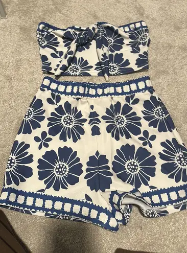 Shorts are high rise and a little crop top One tiny spot on the shorts unknown