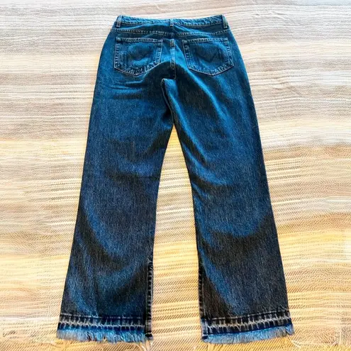 Show Me Your Mumu Brooklyn jeans featuring a flattering high-rise waist, lived-in distressed knees, and a modern raw frayed cropped hem. This style hits right at the ankle for an effortless, laid-back look that pairs perfectly with sneakers, boots, or sandals.