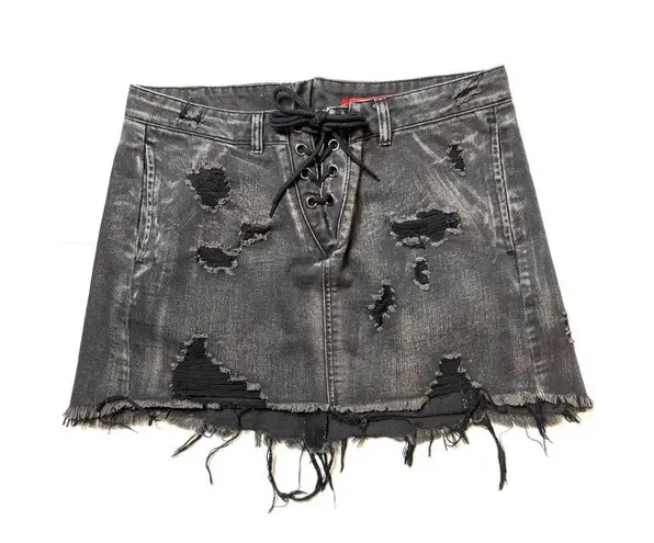Signature8 Charcoal Denim Distressed Destroyed Jeans Shorts with Side Pockets -Fray Details -Back Z... Show more