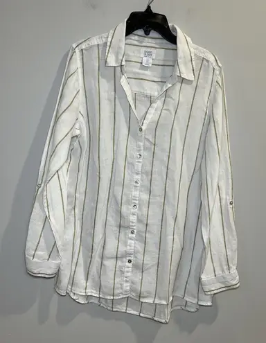 Sigrid Olsen Women’s Linen Striped Button Down Roll Tab Sleeve Size Large White - $20 - From Maria