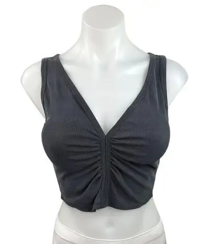 Silence + Noise Black V Neck Ruched Front Ribbed Cropped Tank Top Pullover Stretch Size: S Conditi... Show more