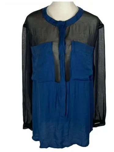 Silence & Noise top in sheer black and navy blue color block. Two front pockets, 1/2 button up to a... Show more