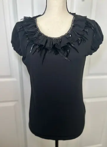 RARE Gorgeous Forever 21 Collection Short Sleeve Black Top Silver Chain Built In. Feathers. Black Be... Show more