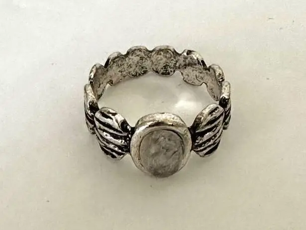Silver tone clear stone/bead ring Has some wear inside Please see photos. They are part of the descr... Show more