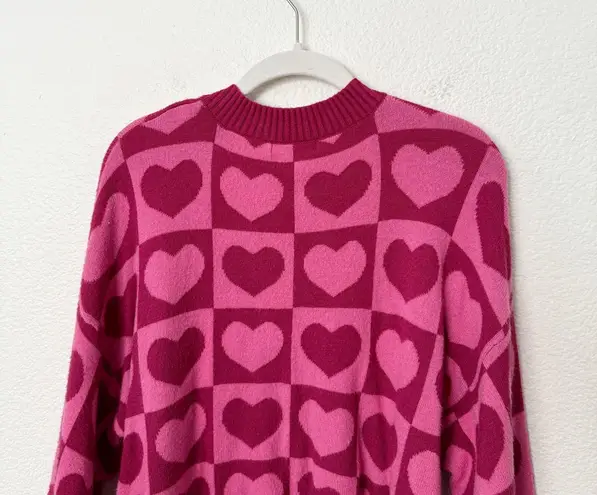 Sincerely Jules Sz Medium M Pink Geometric Heart Print V-Neck Oversized Sweater Good, Pre-Owned Con... Show more