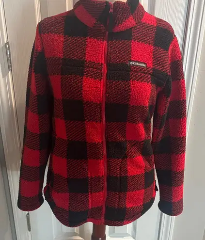 Columbia Gently worn Size medium Red and black plaid fleece Has 2 functional pockets No flaws