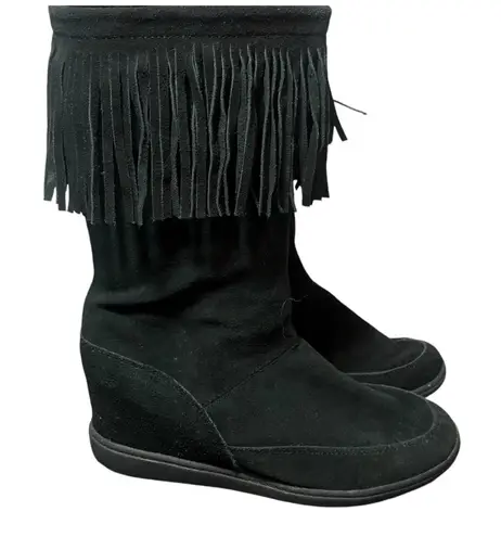 SKECHERS SKCH+3 Very comfy and warm black suede fringed hidden wedge boots. Size 8.5 Good conditions... Show more