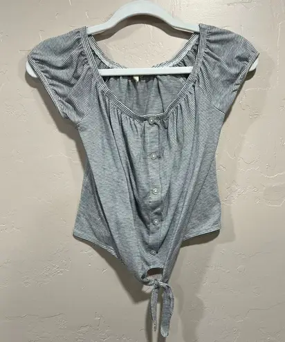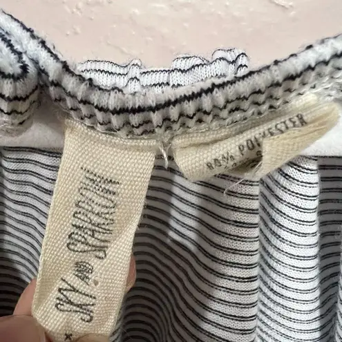 Sky And Sparrow Womens Crop Top White and Black Stripe Off Shoulder Front Knot Size medium Excelle... Show more