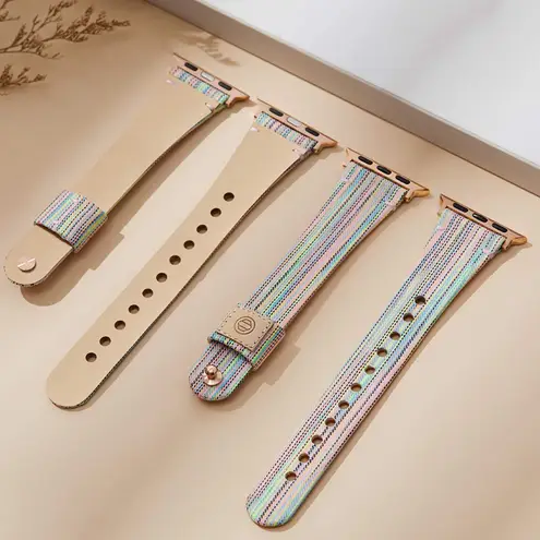 Color: Rainbow These apple watch fabric bands are made from durable canvas and soft leather lining... Show more