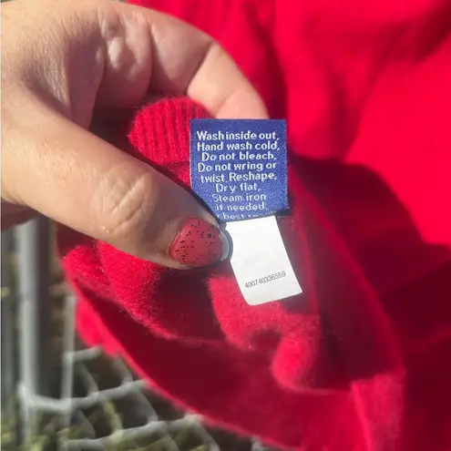 Bright red sweater with stylish details on the sleeves. Perfect for adding a pop of color to your wardrobe. Has three holes under neck, easily repaired by a seamstress. No label, flat measurements provided Neck opening: 10” Shoulder to shoulder: 16.5” Pit to pit: 19” Sleeve inseam: 18.5” Sleeve opening: 3.5” Neck to hem: 27.5”