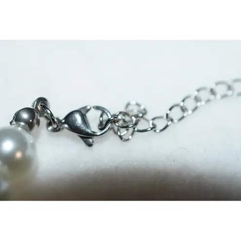 Snowflake Christmas Faux Pearl Silver Tone Chic Lobster Claw Clasp 6in Bracelet White - $6 - From Chrystal